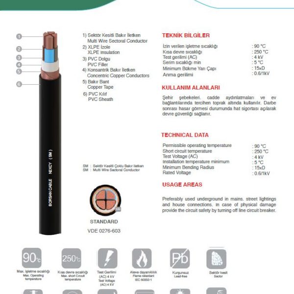 Categories: Bakır Güç ve Tesisat Kabloları, XLPE İzoleli Sektör Kesitli Güç Kabloları