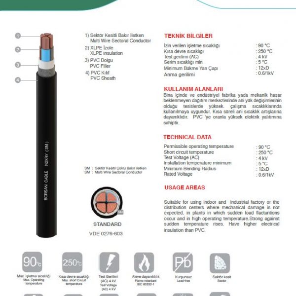 Categories: Bakır Güç ve Tesisat Kabloları, XLPE İzoleli Sektör Kesitli Güç Kabloları